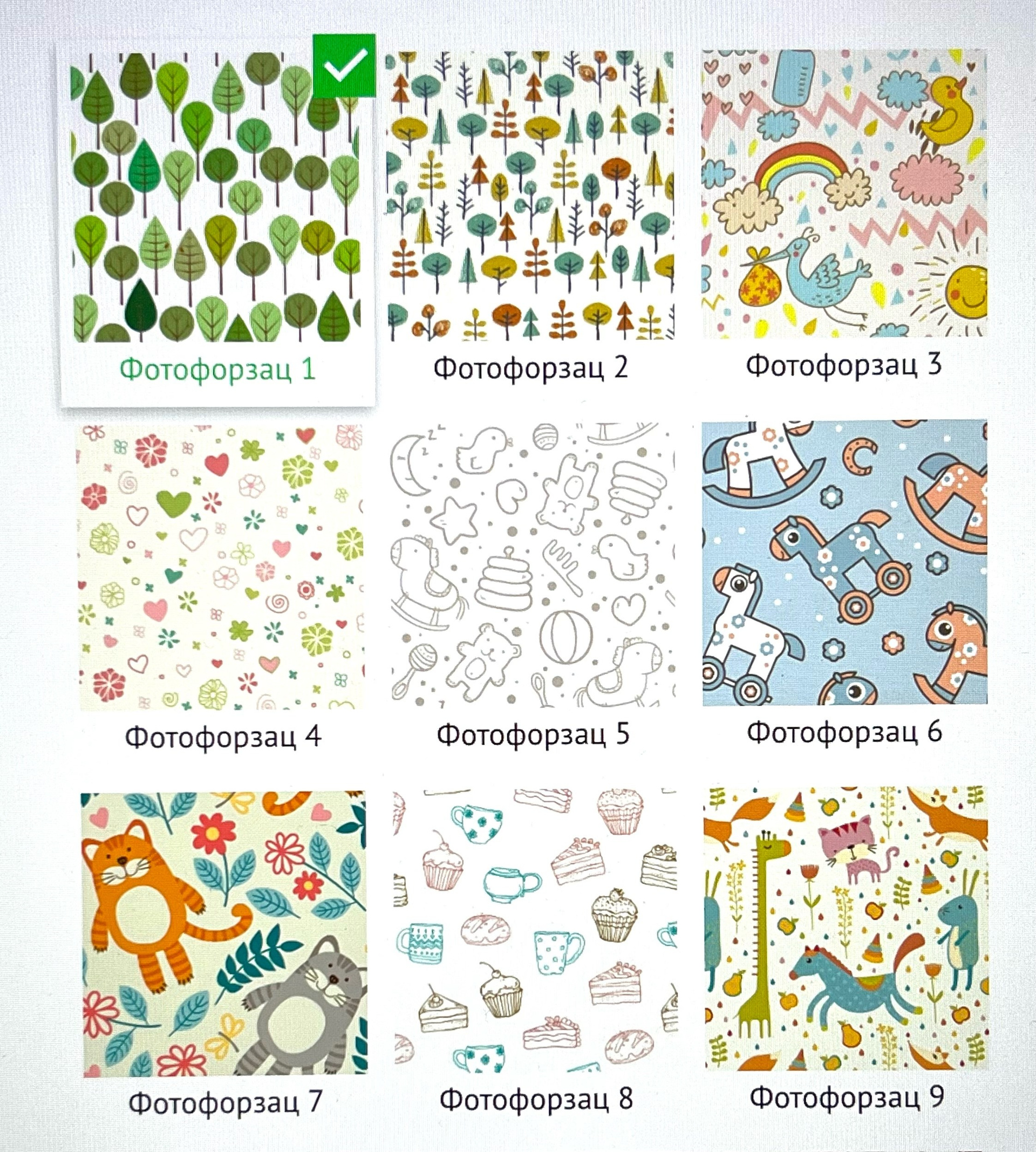Фотокнига из мягкой ткани с тиснением на ваш выбор (из предложенных). Цвет ткани можно выбрать, варианты ткани такие же как в коллекции «Child».